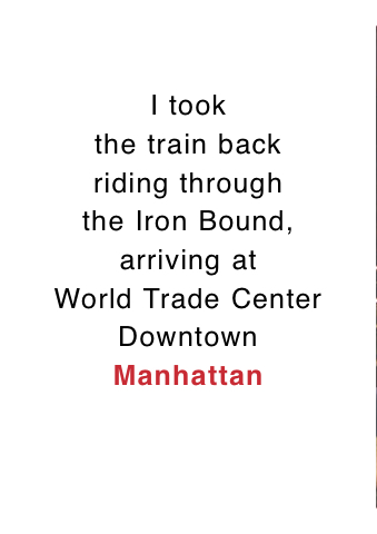 I took the train back riding through the Iron Bound arriving at World Trade Center Downtown Manhattan