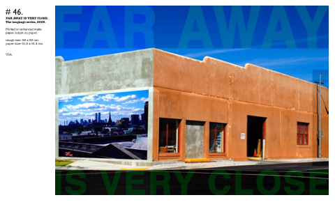 # 46. FAR AWAY IS VERY CLOSE. The language series, 2009. ! Printed on enhanced matte paper. Inkjet on paper. ! image size: 58 x 86 cm. paper size: 61,5 x 91,4 cm. ! USA.