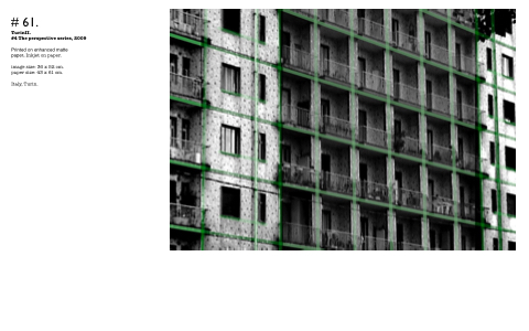 # 61. TurinII. #4 The perspective series, 2009 ! Printed on enhanced matte ! paper. Inkjet on paper. ! image size: 36 x 52 cm. paper size: 43 x 61 cm. ! Italy, Turin.