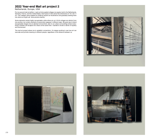 For my second mail art edition, I sent out forty spatial collages via regular mail to the Netherlands, Germany, France, and the United States. Each piece in this series has dimensions of 14 x 20 x 1 cm. The collages came together by shaking random art illustrations and gradually building them into what one might call ‘unstructured urbanity.’